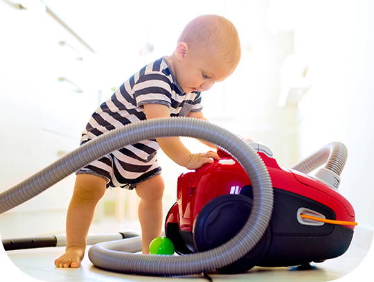 Denk al aan de toekomst, aan de momenten waarop je baby’tje zijn ontdekkingstocht op handen en voeten begint. Hij zal alles willen zien, voelen, aanraken, proeven en niet aarzelen om zijn tanden in een stoelpoot te zetten, de keukenvloer te likken, zich uit te strekken op het tapijt van je salon of zich vast te grijpen aan het toilet van de badkamer. En uiteraard krioelt het hier overal van de microben alsook chemische producten! Vergeet nooit dat zijn nieuwsgierigheid hem werkelijk overal naartoe drijft en hij nergens ‘ vies ’ van is, aangezien hij dat gevoel nog niet kent.