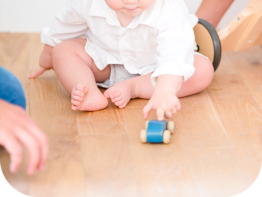 Terwijl hij zich rechttrekt aan de tafelrand duwt hij een vaas vol bloemen op de grond. En net als je vrienden op bezoek zijn begint hij vol overgave te kruipen, telkens in de richting van het stopcontact.
