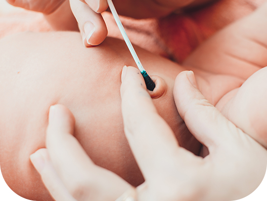 Si le cordon est tombé mais que la cicatrisation n'est pas complète, il faut :