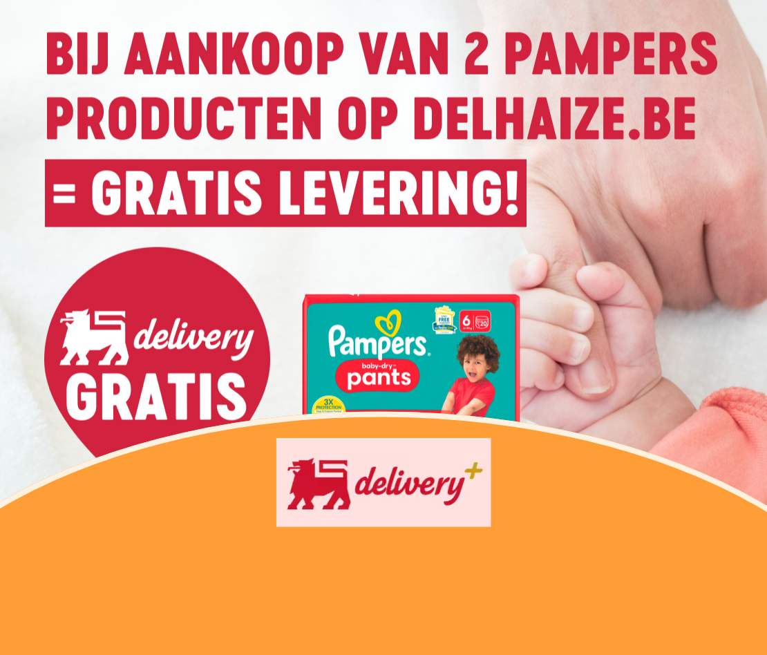 Maak gebruik van onze nieuwe actie: bestel twee Pampers producten via Delhaize.be of de My Delhaize-app en profiteer van gratis levering op je hele bestelling! 🛒👶